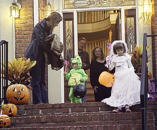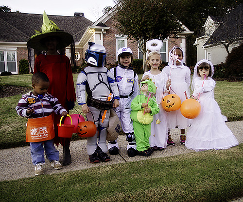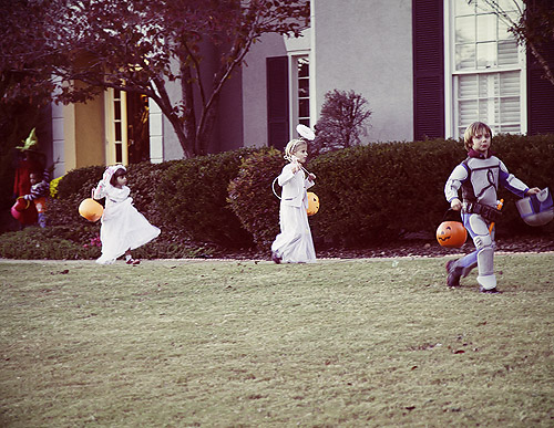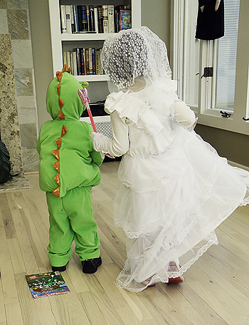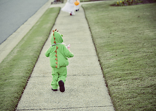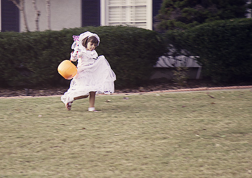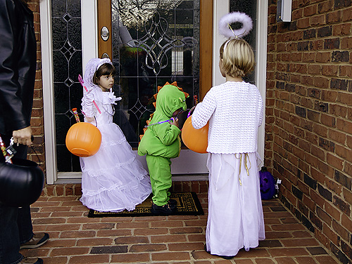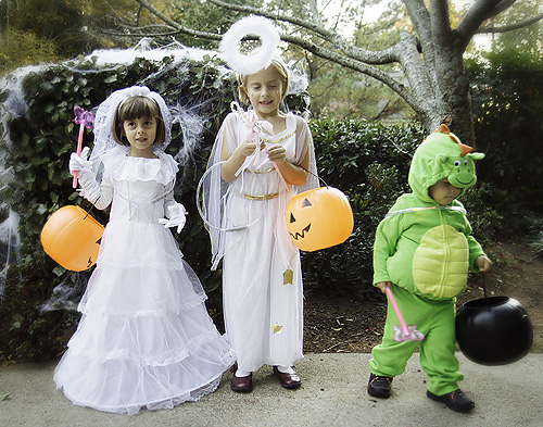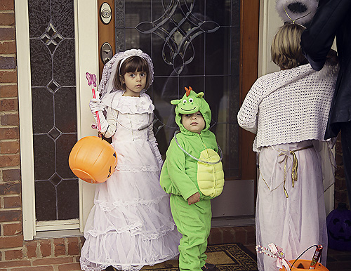 This was our first Halloween in our new neighborhood. We did miss our old neighborhood’s parade of kids and parents in costumes. With no neighborhood parade, the kids joined another family who also had three kids for trick-or-treating through the neighborhood. Soon other kids joined in as well. Our girls were not very scary though. Cara dressed as a bride and Chloe Jane dressed as an angel. At least, we dressed Tommy as a dragon but alas he was more adorable than scary. He would, however, roar as terrifyingly as he could to give the costume some more authenticity.