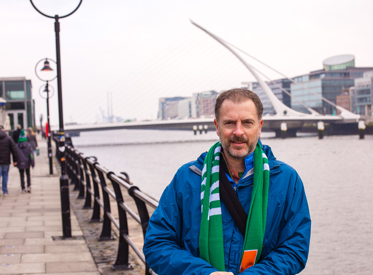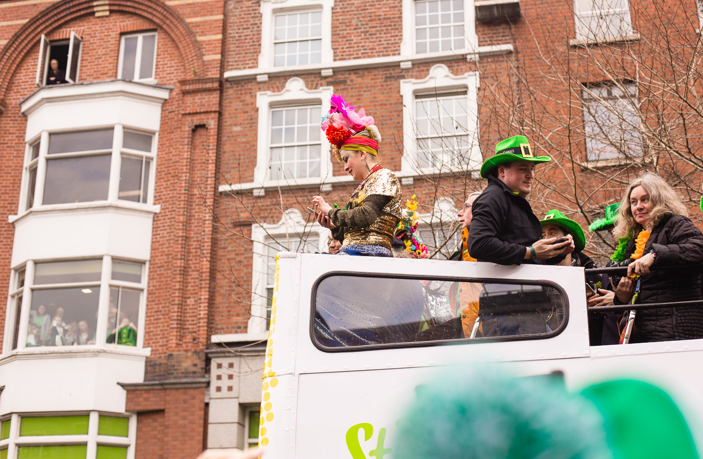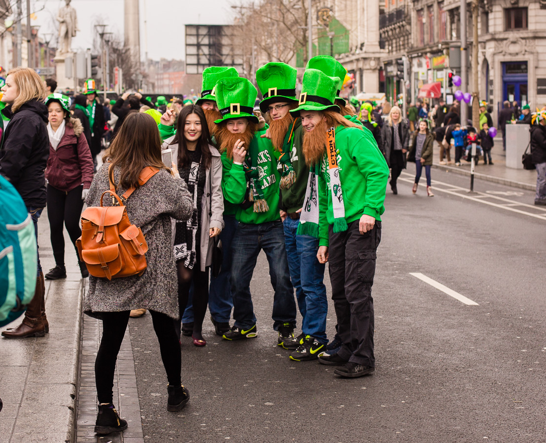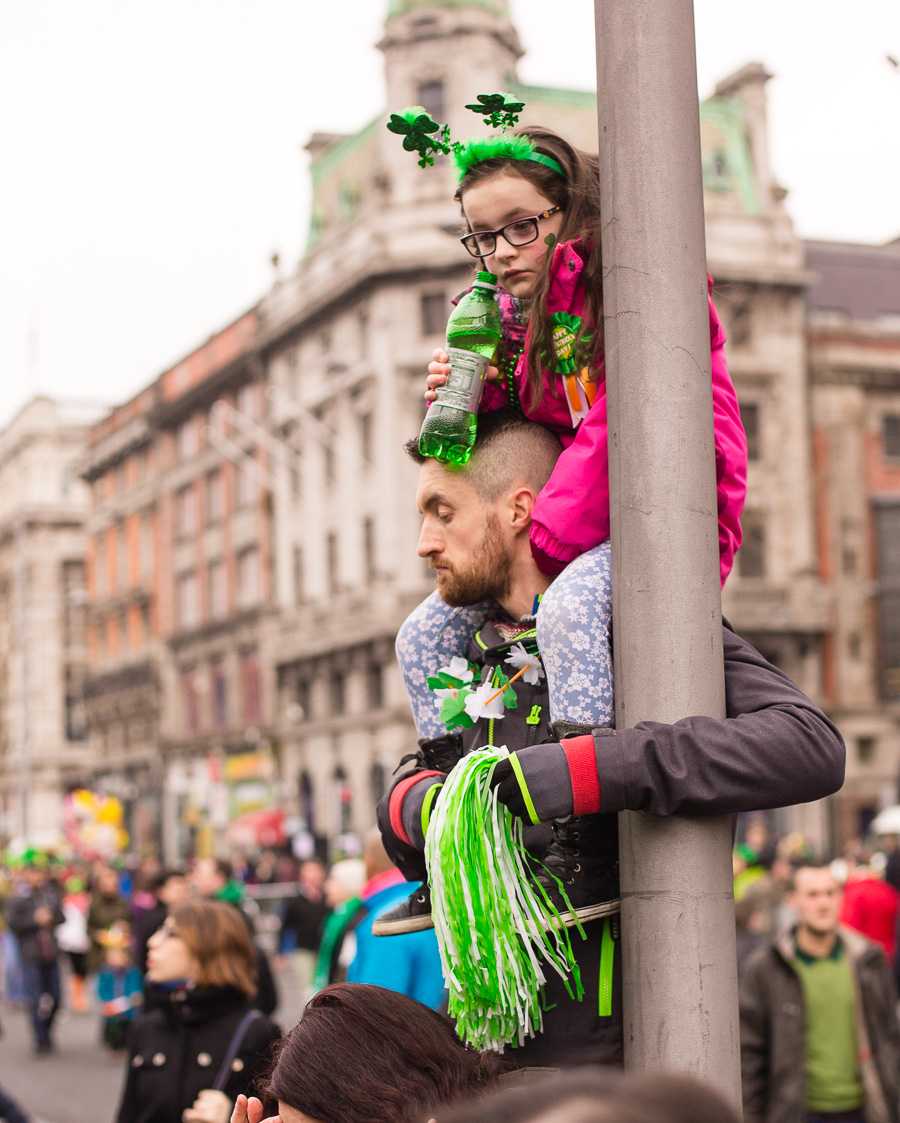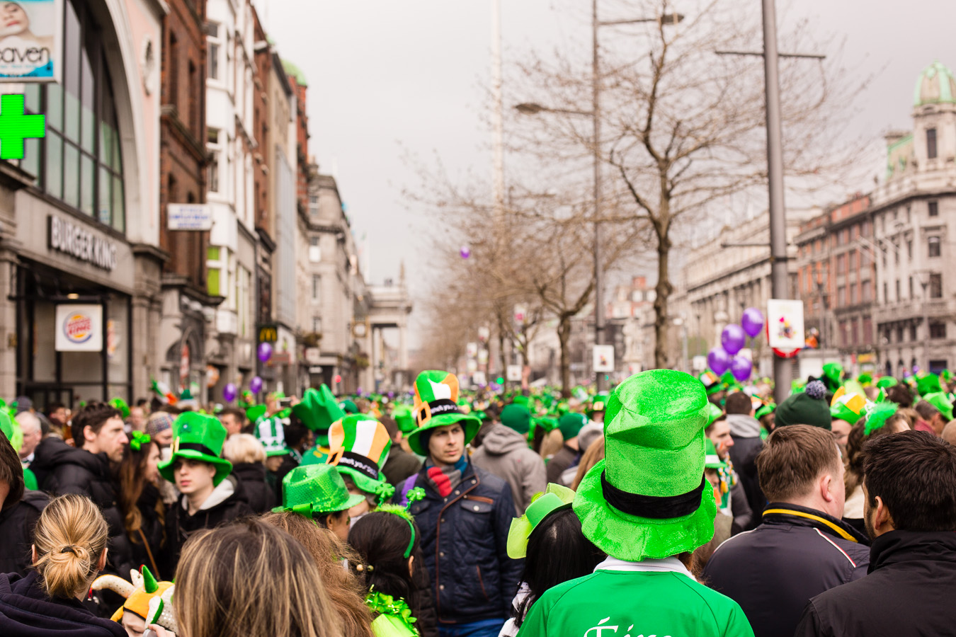 St. Patrick’s Day in Dublin. The streets were packed with green-clad people lined up for the parade.