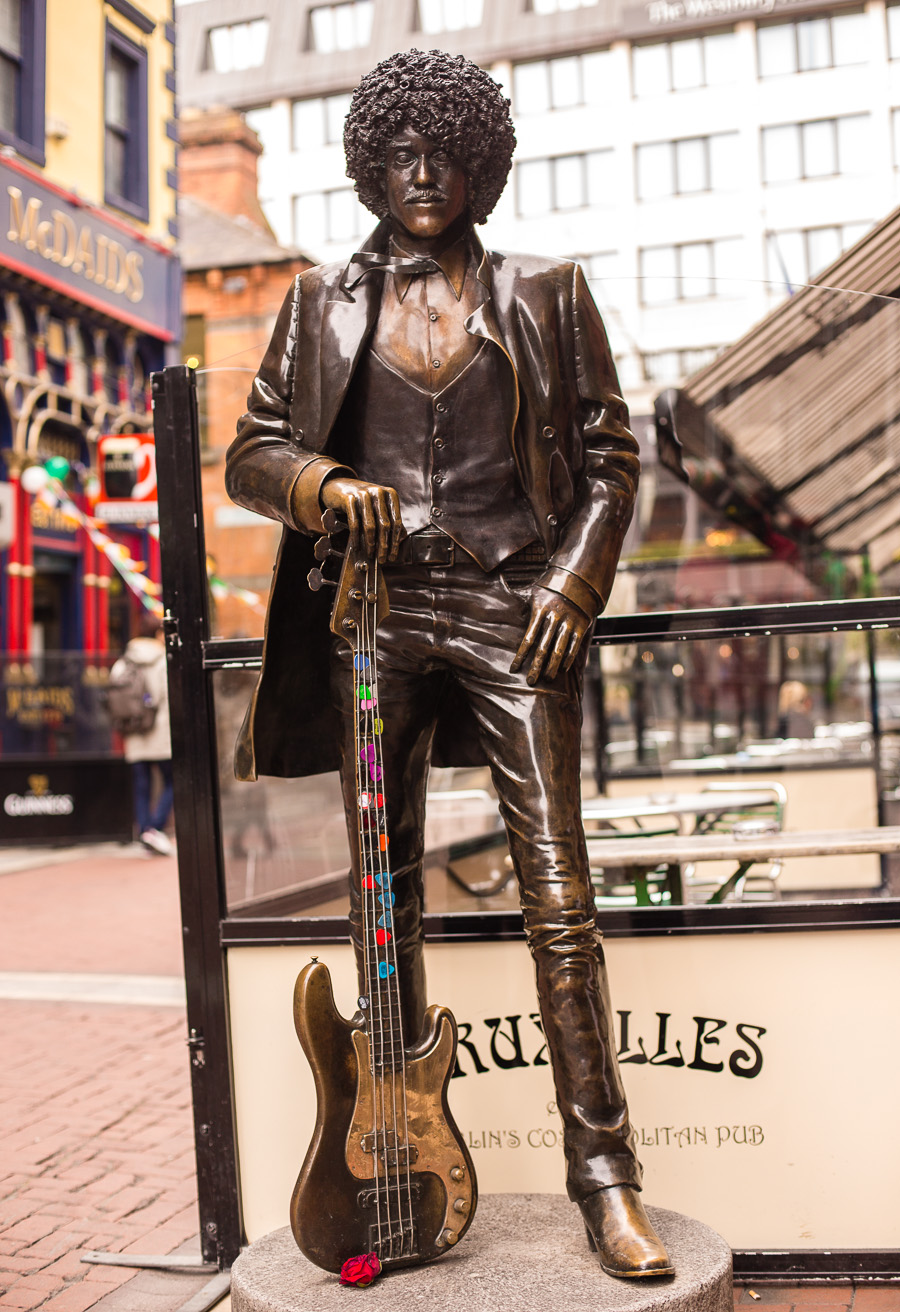 After we had enough of the parade and the crowd, we sought out the statue of Phil Lynott, front man for Thin Lizzy of “Jailbreak” and “The Boys are Back in Town” fame. Before U2 and the Frames, Thin Lizzy was the break out popular band from Ireland.